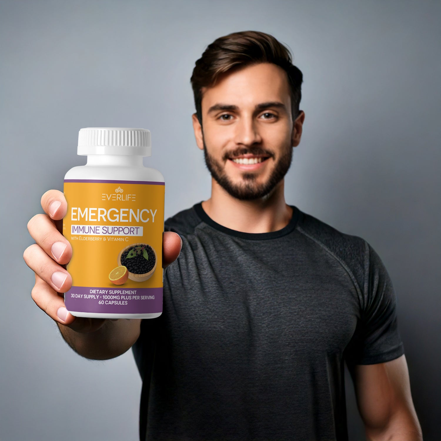 EverLife Emergency Immune Support is a premium dietary supplement formulated with Elderberry, Vitamin C, Zinc, Echinacea, Probiotics, and Curcumin to help strengthen your immune system. These powerful ingredients work together to support immune function, reduce inflammation, promote gut health, and help your body fight off seasonal threats.